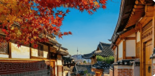 북촌한옥마을은 전통 한옥이 잘 보존된 지역으로, 가을철에는 단풍과 함께 전통적인 한국의 아름다움을 느낄 수 있습니다. 이곳은 좁은 골목길과 한옥들이 어우러져 있어, 산책하며 단풍을 즐기기에 좋은 장소입니다.