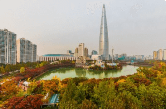 석촌호수는 서울의 대표적인 호수 공원으로, 가을철에는 호수 주변의 나무들이 단풍으로 물들어 환상적인 경치를 제공합니다. 이곳은 산책로가 잘 조성되어 있어, 가족이나 연인과 함께 여유로운 시간을 보내기에 적합합니다.