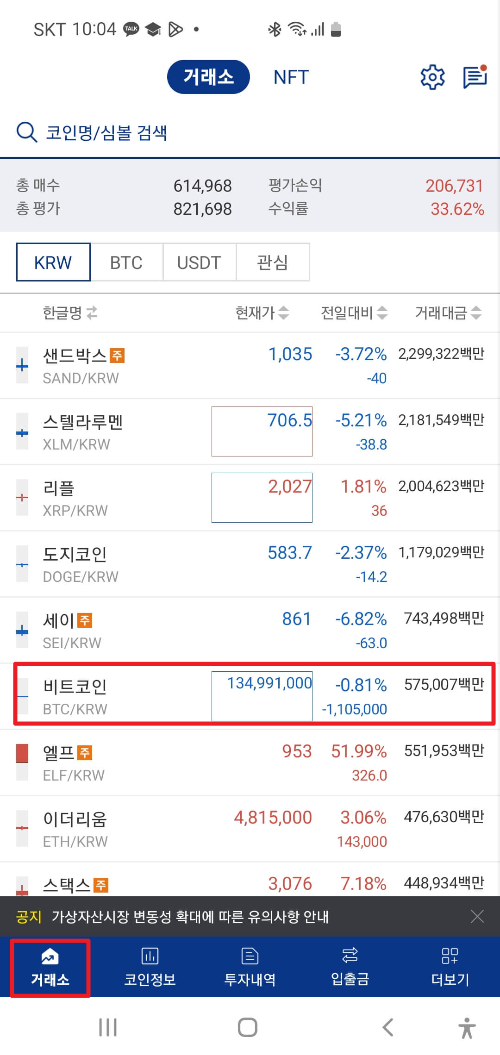 예를들어) 100만원으로 업비트에서 코인투자를 하려고 한다면