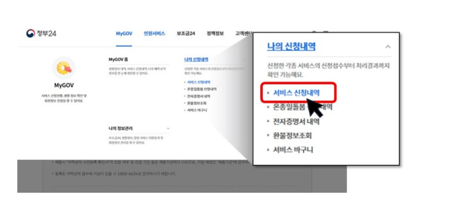 6) MyGOV → 나의 신청내역에서 신청내역을 확인후 출력합니다.