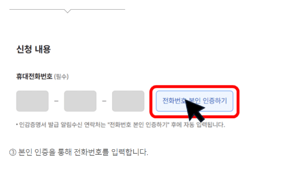 5) 신청인 정보를 입력하고 휴대폰 본인 인증을 합니다.