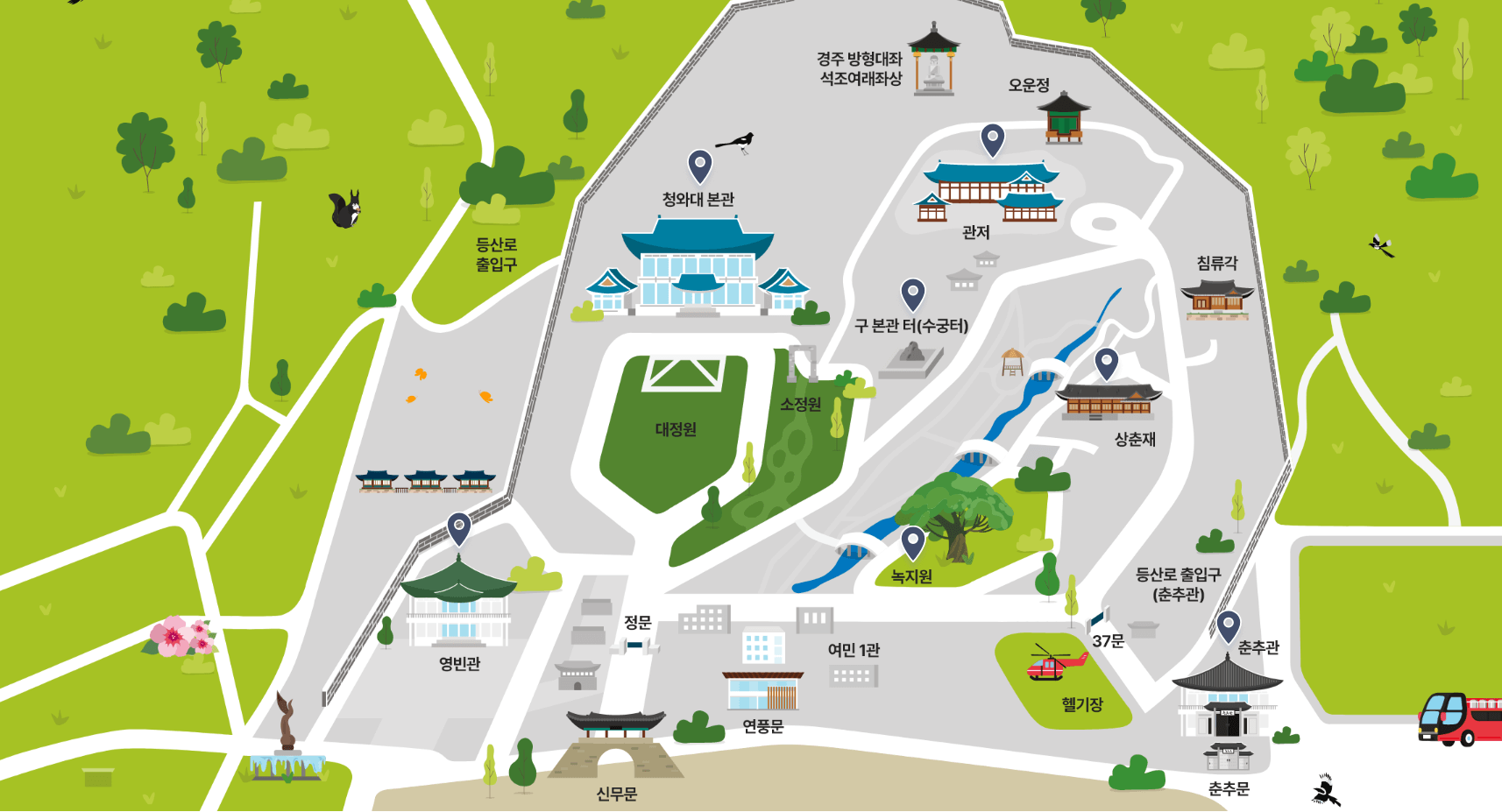 • 방문시간 엄수 : 청와대 관람은 사전 예약이 필수이며, 예약된 시간에 맞춰 도착하지 않으면 입장이 제한될 수 있습니다.