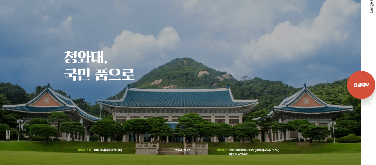 1) 청와대 공식 홈페이지 접속 : 청와대 관람 예약 페이지로 이동합니다.
