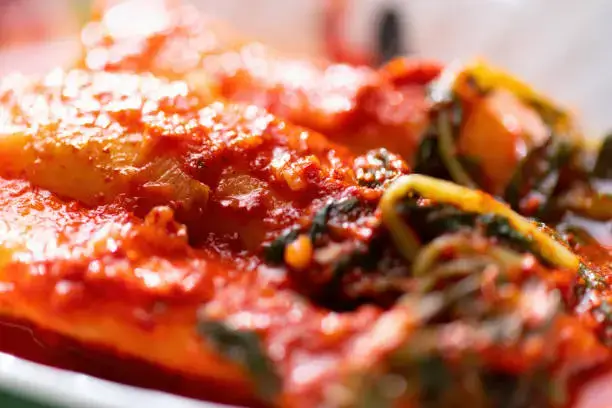 총각김치는 비타민C, 칼슘, 식이섬유 등 다양한 영양소가 풍부합니다. 특히 비타민C는 강력한 항산화 작용을 하여 면역력을 높이고 피부 미용에도 도움을 줍니다. 또한, 식이섬유는 장 건강을 개선하고 변비 예방에도 효과적입니다.